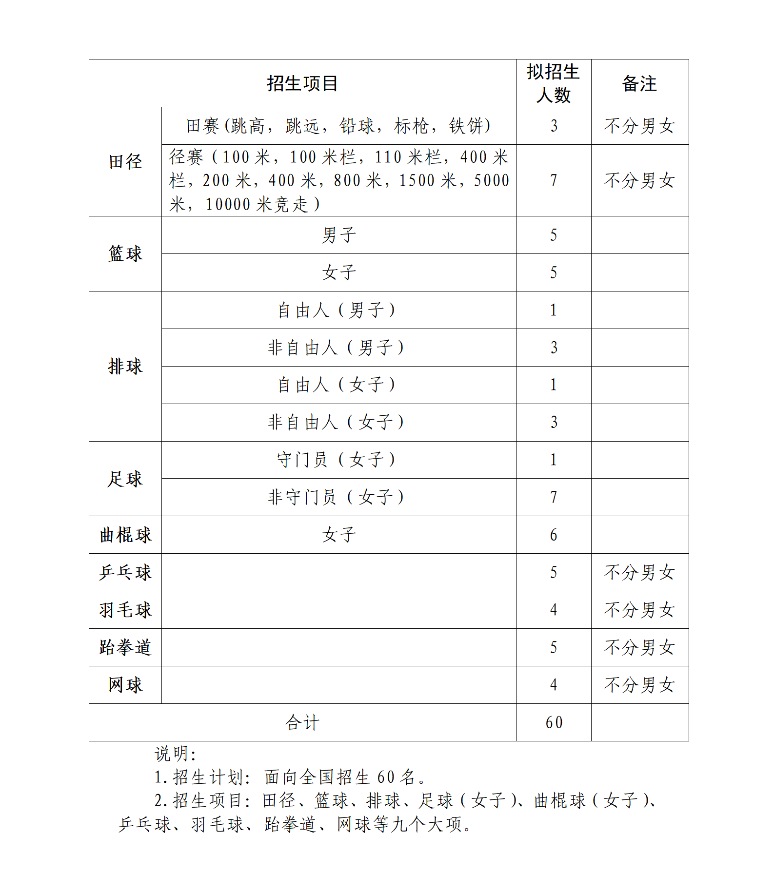 (四)篮球(男子)、篮球(女子)、排球(男子)、排球(女子)按项目分性别,根据计划分别依据综合分从高到低择优录取。